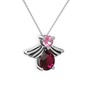 Rodolit garnet ve pembe kuvars 14 ayar beyaz altın kolye (40 cm beyaz altın rolo zincir)