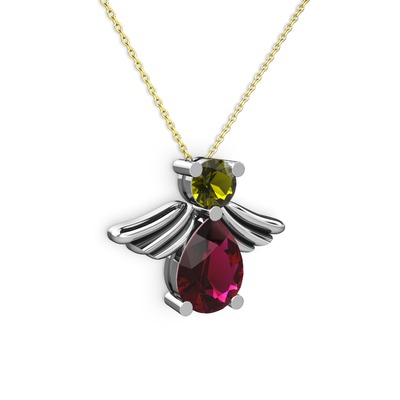 Rodolit garnet ve peridot 8 ayar beyaz altın kolye (40 cm altın rolo zincir)