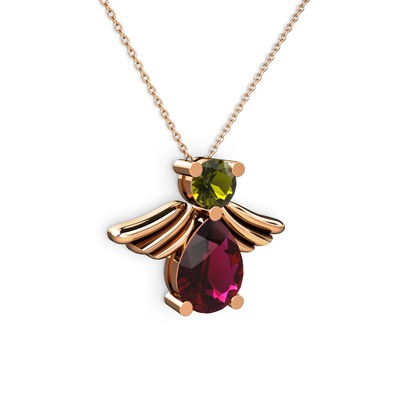 Rodolit garnet ve peridot 925 ayar rose altın kaplama gümüş kolye (40 cm rose altın rolo zincir)