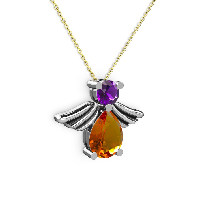 Sitrin ve ametist 925 ayar gümüş kolye (40 cm altın rolo zincir)
