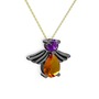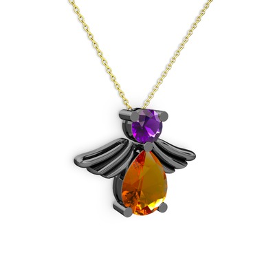 Sitrin ve ametist 925 ayar siyah rodyum kaplama gümüş kolye (40 cm altın rolo zincir)