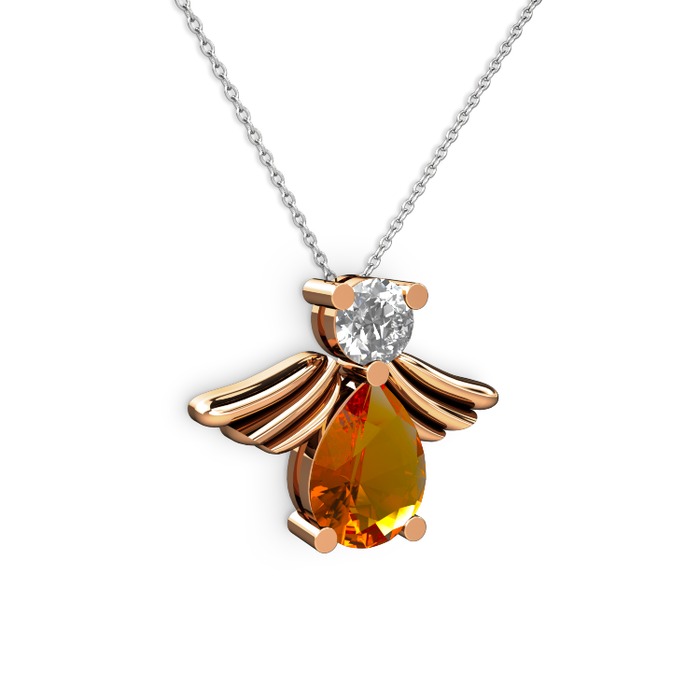 Sitrin ve beyaz zirkon 8 ayar rose altın kolye (40 cm beyaz altın rolo zincir)