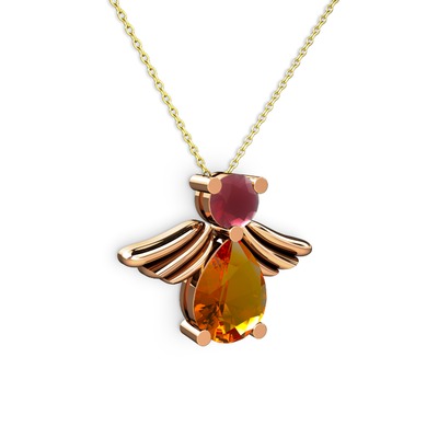 Sitrin ve kök yakut 14 ayar rose altın kolye (40 cm gümüş rolo zincir)