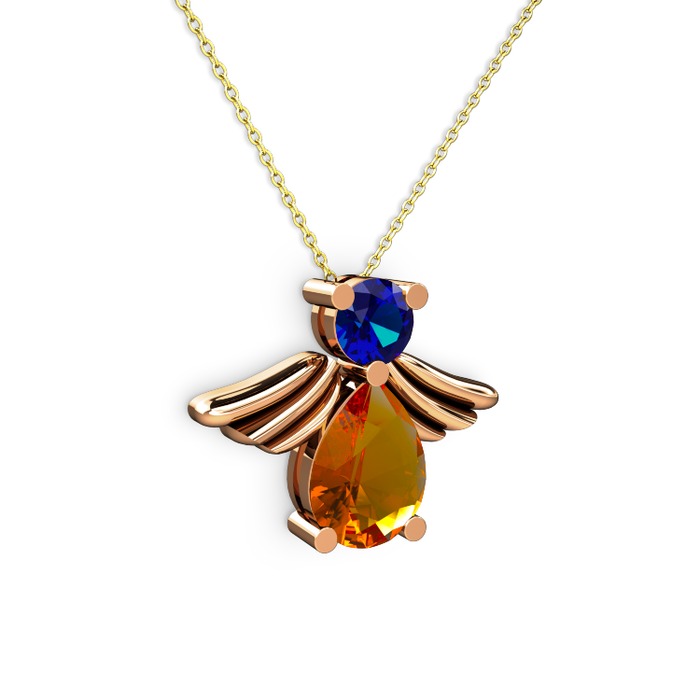 Sitrin ve lab safir 18 ayar rose altın kolye (40 cm altın rolo zincir)