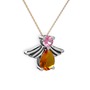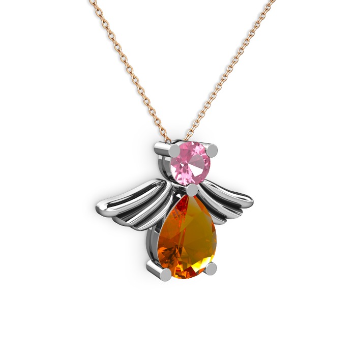 Sitrin ve pembe kuvars 925 ayar gümüş kolye (40 cm gümüş rolo zincir)