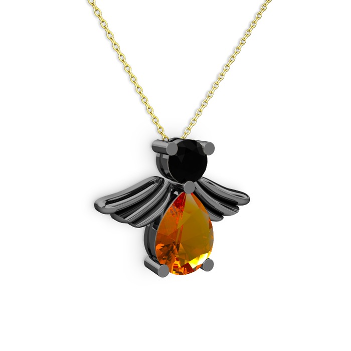 Sitrin ve siyah zirkon 925 ayar siyah rodyum kaplama gümüş kolye (40 cm gümüş rolo zincir)