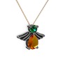 Sitrin ve yeşil kuvars 925 ayar siyah rodyum kaplama gümüş kolye (40 cm gümüş rolo zincir)