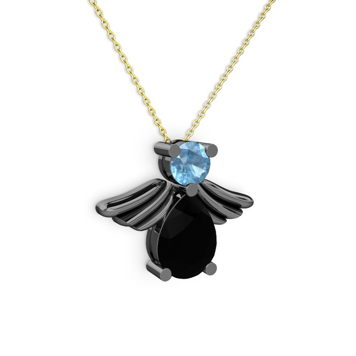 Siyah zirkon ve akuamarin 925 ayar siyah rodyum kaplama gümüş kolye (40 cm gümüş rolo zincir)