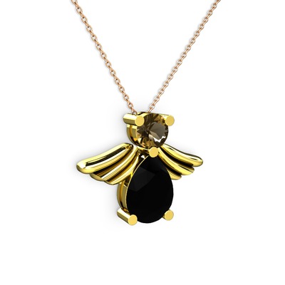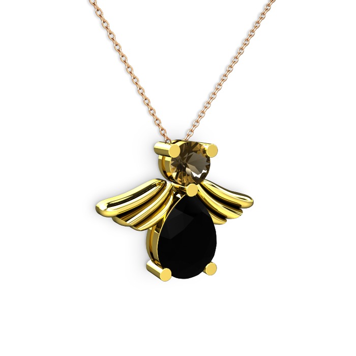 Siyah zirkon ve dumanlı kuvars 18 ayar altın kolye (40 cm gümüş rolo zincir)