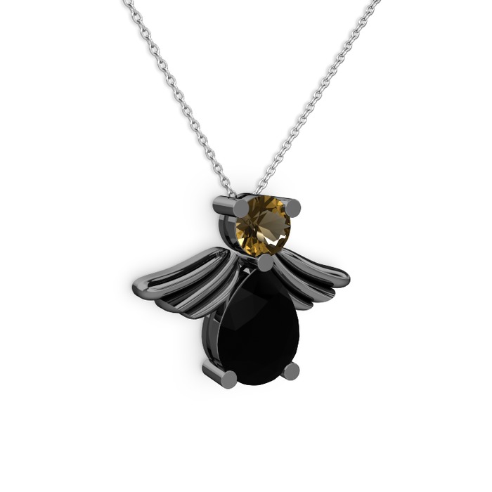 Siyah zirkon ve dumanlı kuvars 925 ayar siyah rodyum kaplama gümüş kolye (40 cm beyaz altın rolo zincir)