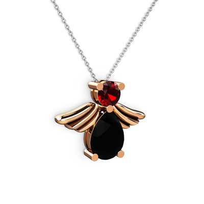 Siyah zirkon ve garnet 18 ayar rose altın kolye (40 cm beyaz altın rolo zincir)