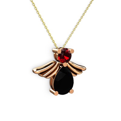 Siyah zirkon ve garnet 18 ayar rose altın kolye (40 cm gümüş rolo zincir)