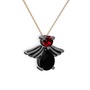 Siyah zirkon ve garnet 925 ayar siyah rodyum kaplama gümüş kolye (40 cm rose altın rolo zincir)