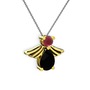 Siyah zirkon ve kök yakut 14 ayar altın kolye (40 cm gümüş rolo zincir)
