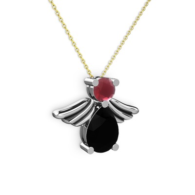 Siyah zirkon ve kök yakut 925 ayar gümüş kolye (40 cm altın rolo zincir)