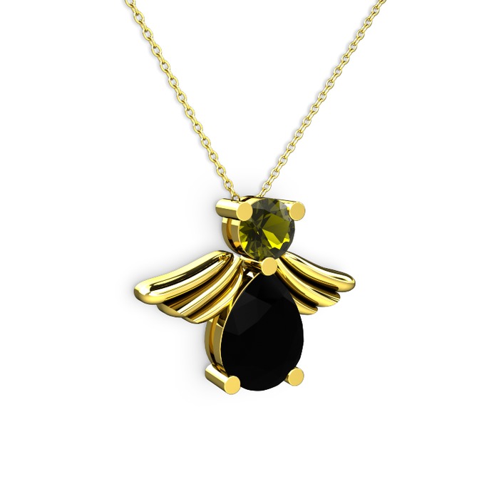 Siyah zirkon ve peridot 925 ayar altın kaplama gümüş kolye (40 cm altın rolo zincir)