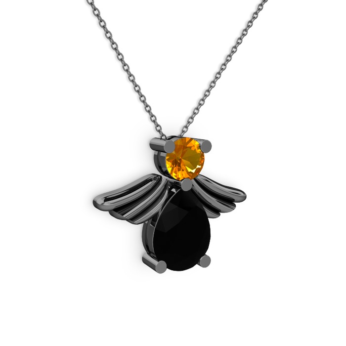 Siyah zirkon ve sitrin 925 ayar siyah rodyum kaplama gümüş kolye (40 cm gümüş rolo zincir)