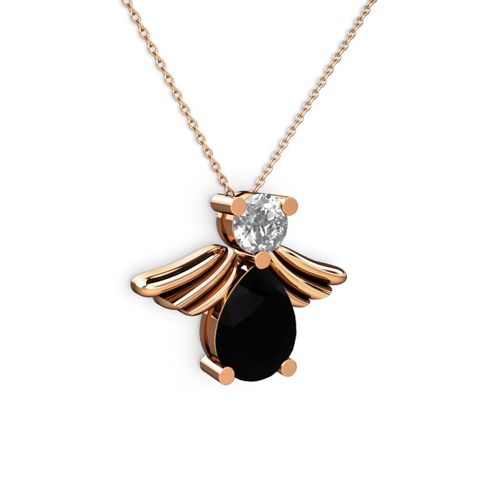 Siyah zirkon ve swarovski 8 ayar rose altın kolye (40 cm rose altın rolo zincir)