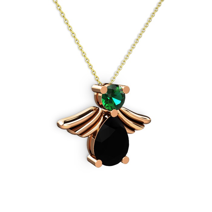 Siyah zirkon ve yeşil kuvars 18 ayar rose altın kolye (40 cm gümüş rolo zincir)