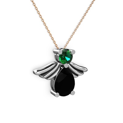 Siyah zirkon ve yeşil kuvars 8 ayar beyaz altın kolye (40 cm gümüş rolo zincir)
