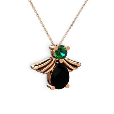 Siyah zirkon ve yeşil kuvars 925 ayar rose altın kaplama gümüş kolye (40 cm gümüş rolo zincir)