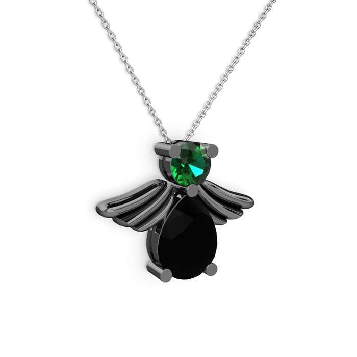 Siyah zirkon ve yeşil kuvars 925 ayar siyah rodyum kaplama gümüş kolye (40 cm beyaz altın rolo zincir)