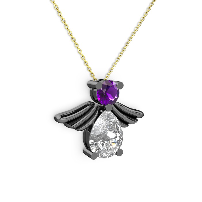 Swarovski ve ametist 925 ayar siyah rodyum kaplama gümüş kolye (40 cm altın rolo zincir)