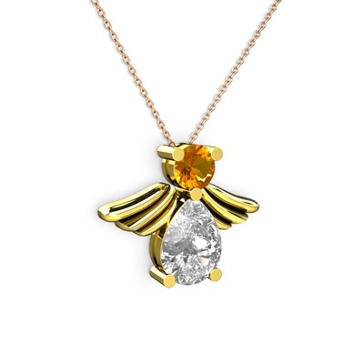 Swarovski ve sitrin 18 ayar altın kolye (40 cm rose altın rolo zincir)