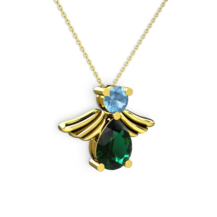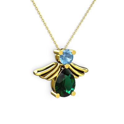 Yeşil kuvars ve akuamarin 18 ayar altın kolye (40 cm altın rolo zincir)