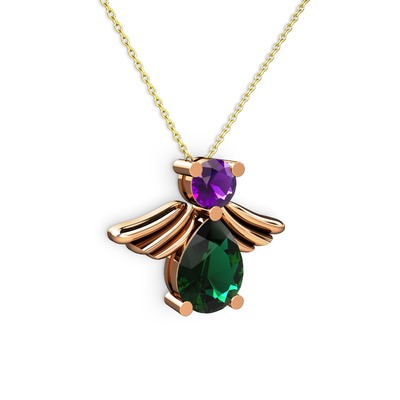Yeşil kuvars ve ametist 14 ayar rose altın kolye (40 cm altın rolo zincir)
