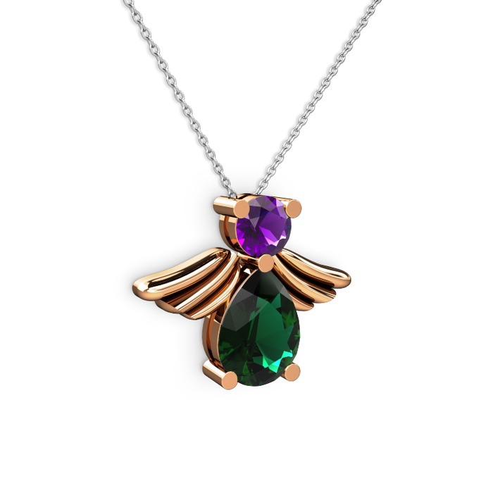 Yeşil kuvars ve ametist 8 ayar rose altın kolye (40 cm gümüş rolo zincir)