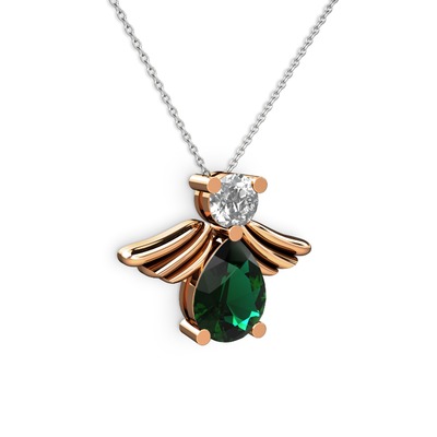 Yeşil kuvars ve beyaz zirkon 18 ayar rose altın kolye (40 cm beyaz altın rolo zincir)