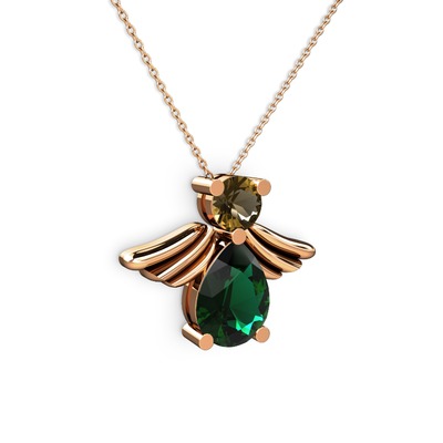 Yeşil kuvars ve dumanlı kuvars 925 ayar rose altın kaplama gümüş kolye (40 cm rose altın rolo zincir)