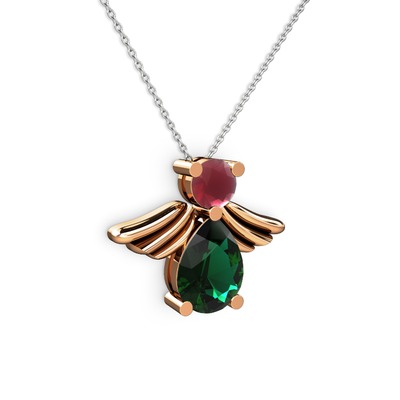 Yeşil kuvars ve kök yakut 18 ayar rose altın kolye (40 cm beyaz altın rolo zincir)
