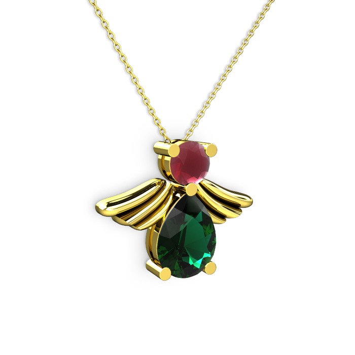 Yeşil kuvars ve kök yakut 8 ayar altın kolye (40 cm altın rolo zincir)