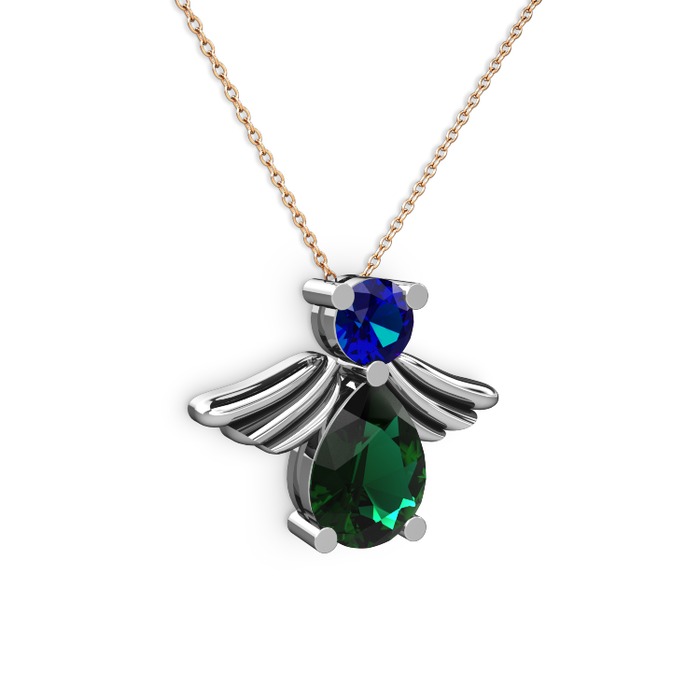 Yeşil kuvars ve lab safir 18 ayar beyaz altın kolye (40 cm rose altın rolo zincir)