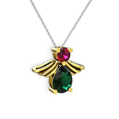 Yeşil kuvars ve rodolit garnet 18 ayar altın kolye (40 cm gümüş rolo zincir)