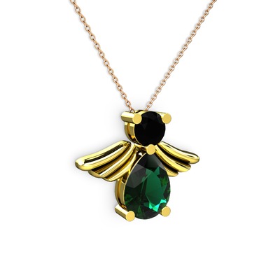Yeşil kuvars ve siyah zirkon 14 ayar altın kolye (40 cm rose altın rolo zincir)