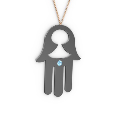 Akuamarin 925 ayar siyah rodyum kaplama gümüş kolye (40 cm gümüş rolo zincir)