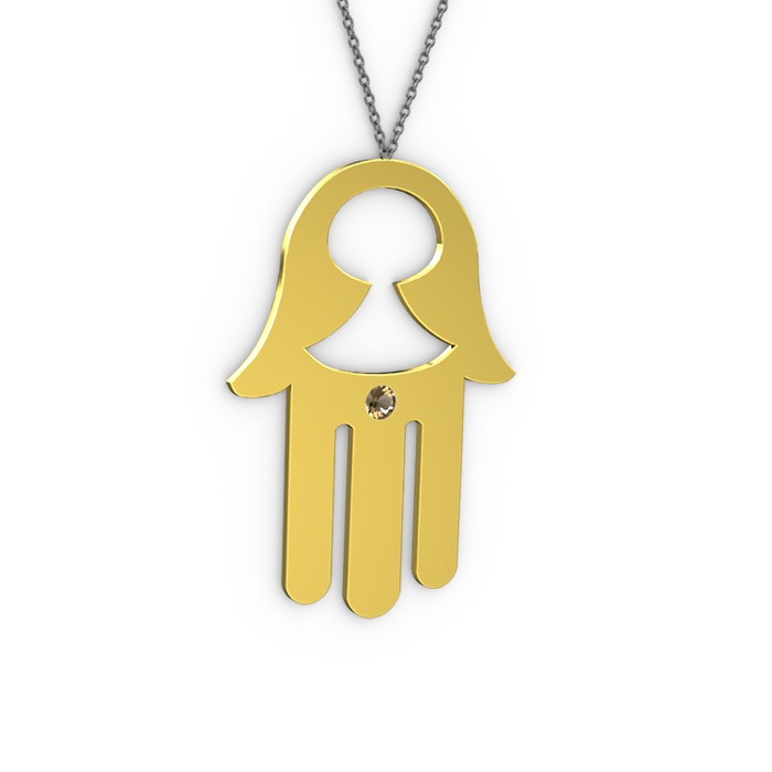 Dumanlı kuvars 14 ayar altın kolye (40 cm gümüş rolo zincir)
