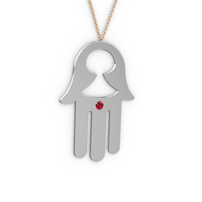 Garnet 14 ayar beyaz altın kolye (40 cm gümüş rolo zincir)