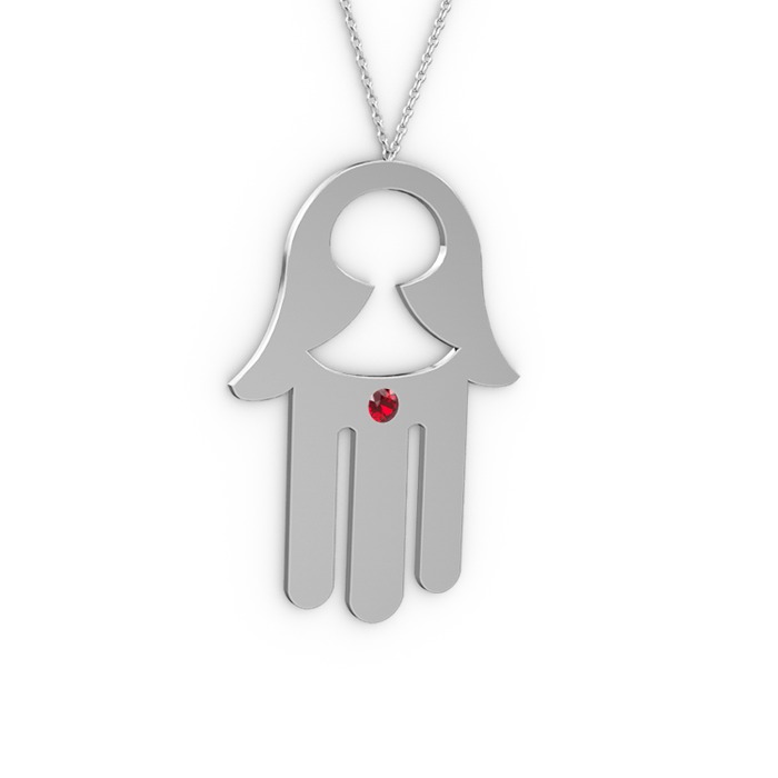 Garnet 8 ayar beyaz altın kolye (40 cm gümüş rolo zincir)