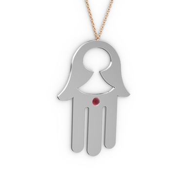 Kök yakut 8 ayar beyaz altın kolye (40 cm rose altın rolo zincir)