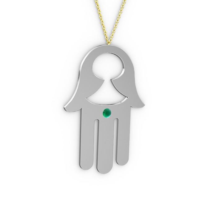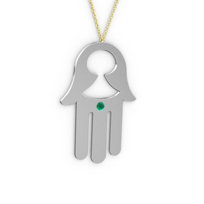 Kök zümrüt 14 ayar beyaz altın kolye (40 cm gümüş rolo zincir)