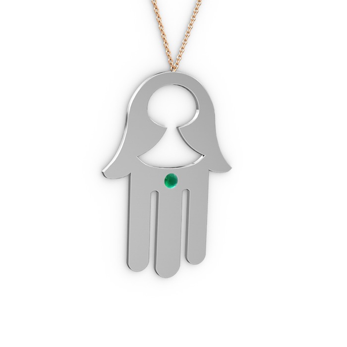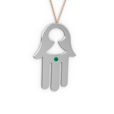 Kök zümrüt 8 ayar beyaz altın kolye (40 cm rose altın rolo zincir)