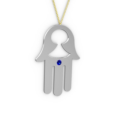 Lab safir 14 ayar beyaz altın kolye (40 cm altın rolo zincir)