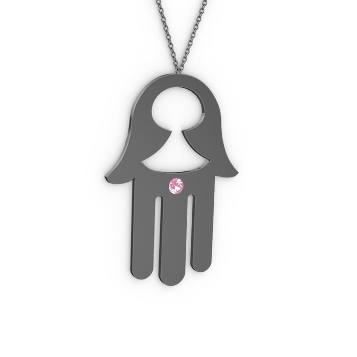 Pembe kuvars 925 ayar siyah rodyum kaplama gümüş kolye (40 cm gümüş rolo zincir)