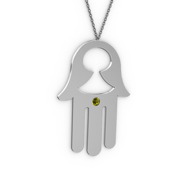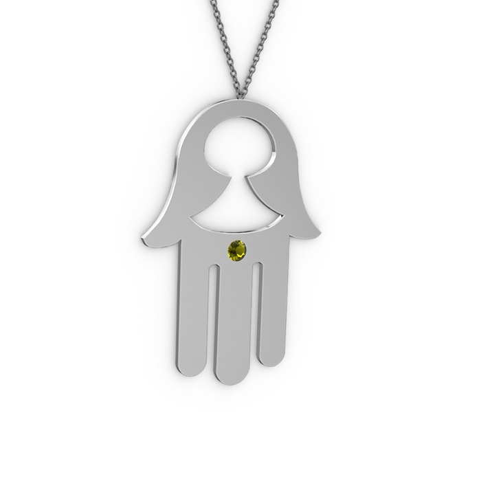Peridot 14 ayar beyaz altın kolye (40 cm gümüş rolo zincir)