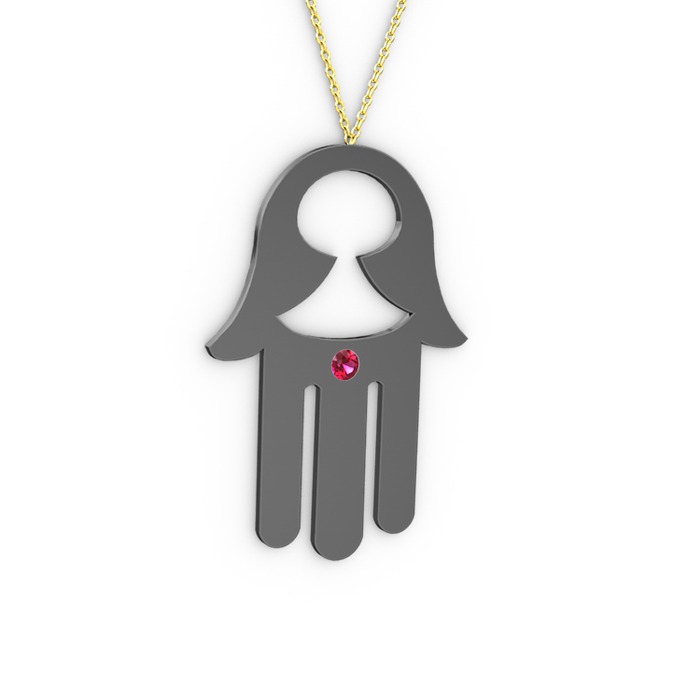 Rodolit garnet 925 ayar siyah rodyum kaplama gümüş kolye (40 cm altın rolo zincir)