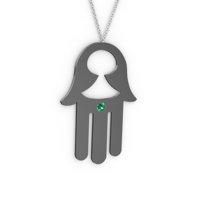Yeşil kuvars 925 ayar siyah rodyum kaplama gümüş kolye (40 cm beyaz altın rolo zincir)